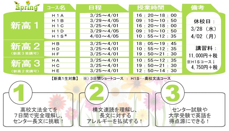 - 冬期講習後、引き続きご入会いただいた場合、入会金が半額免除(10、000円⇒5、000円)他、特典があります。