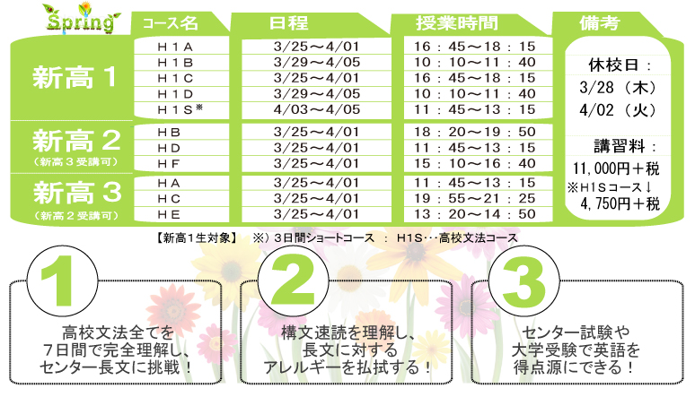 - 冬期講習後、引き続きご入会いただいた場合、入会金が半額免除(10、000円⇒5、000円)他、特典があります。