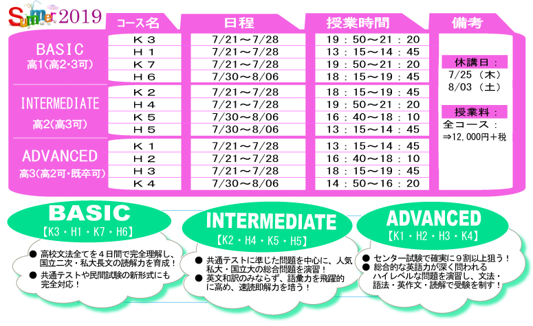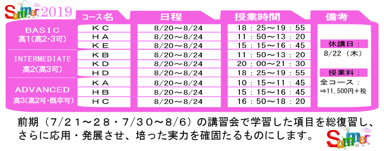 - 夏期講習を受講された方には、オリジナル音声教材を無料にて郵送致します。