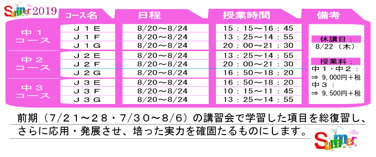 - 夏期講習後、引き続きご入会いただいた場合、入会金が半額免除(10.000円⇒5.000円)他、特典があります。