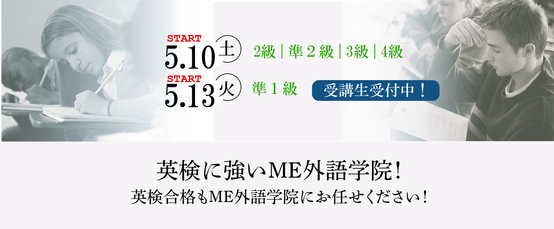 MEでは、「2025年度 英検春講習」を下記の通り実施したします。「2025年度 英検春講習」では、3回の筆記対策、1回のリスニング対策、そして3級以上の方には1回の二次試験対策授業を行います。
