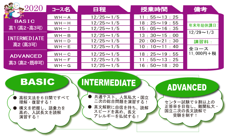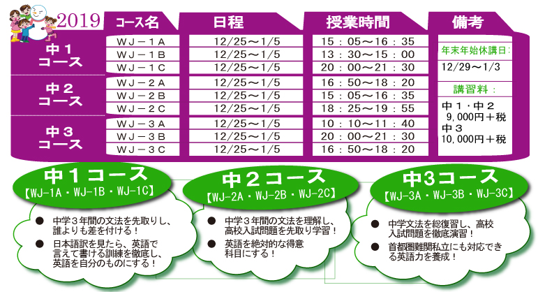 - 冬期講習後、引き続きご入会いただいた場合、入会金が半額免除(10.000円⇒5.000円)他、特典があります。