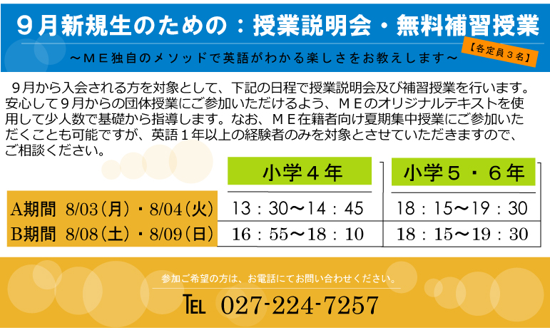 小学生9月生募集中!